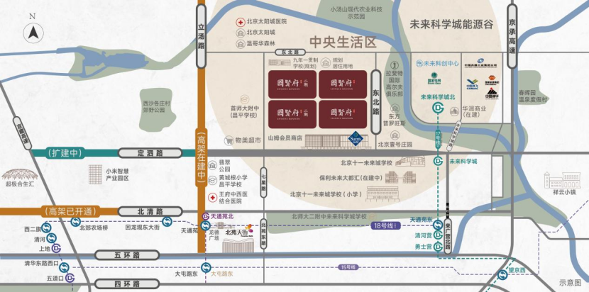 高效路网串联城市繁华。地铁17号线预计2025年底全线贯通,4站可达望京,5站至太阳宫,8站直达工体,向南快速抵达亦庄;地铁18号线亦将于2025年底通车,换乘一次即达西二旗。定泗路拓宽为双向六车道,北清路快速化改造工程一标段全面完工,经立汤路、北苑东路、京承高速等主干道,轻松畅达北苑、望京、永丰、西二旗等重点区域,出行更快意。