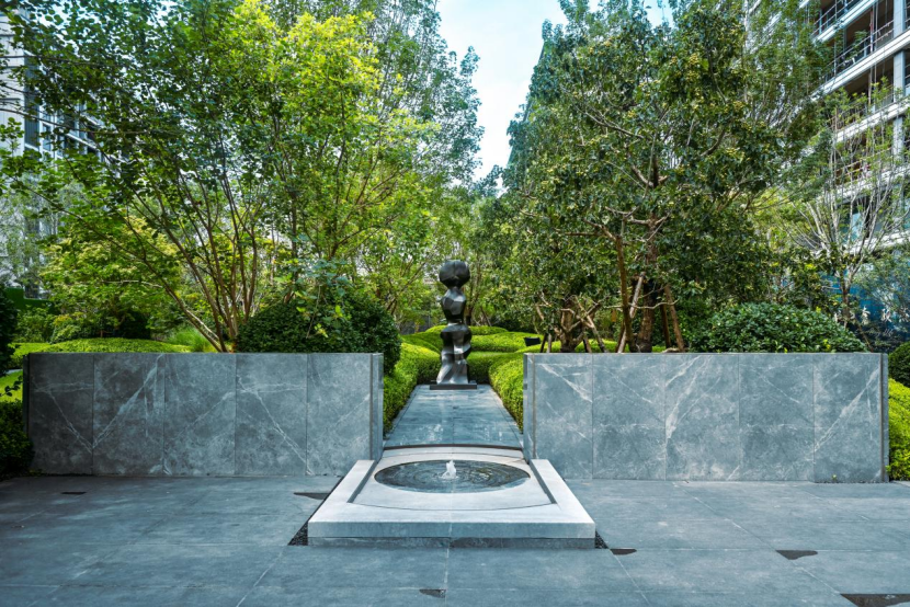 从约40米门头开启的“登门之仪”,到雕塑石苑与跌水相伴的“过径之幽”,喧嚣被层层滤去。移步“会客之尊”的共享客厅,偶遇新邻居在此驻足,半盏清茶的对谈,陌生化作熟悉;行至约3000㎡阳光草坪,珍贵植被与艺术雕塑正引导着人们探寻“游园之趣”。