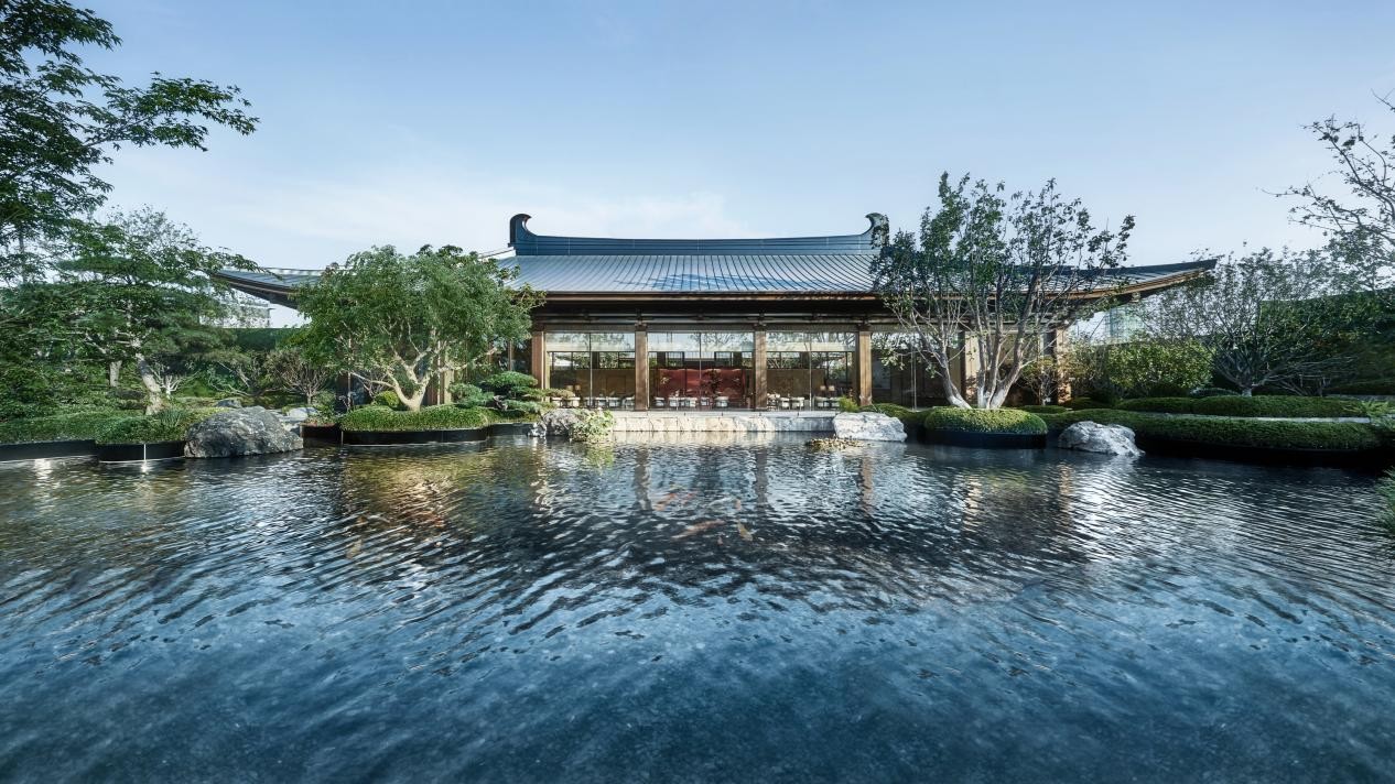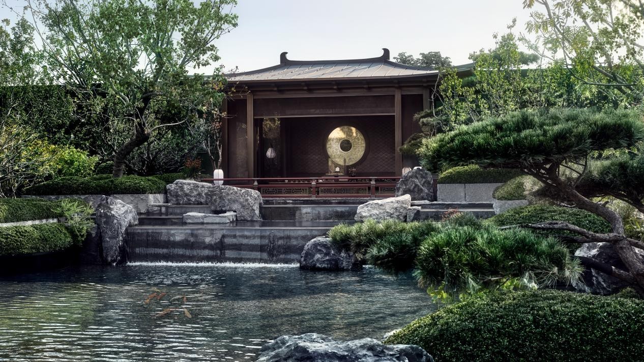 在园林打造上,北京国贤府致力于打造具有文化质感的高品质实景园林,从一期“国贤十景”示范区,到贰期可行、可望、可居、可游的实景园林,巍峨的庑殿顶、精巧的斗拱、飘逸的飞檐,共同重现了一座当代唐风府邸。近5600㎡的唐风园林以“一池三山”为骨架,融入“宫-苑-坊”三重景观体系,唐风建筑与近2600㎡的湖景相映成趣。这种将盛唐气象与自然意境融合的造园手法,北京国贤府却将其作为标配,实现了感官体验的“降维打击”。
