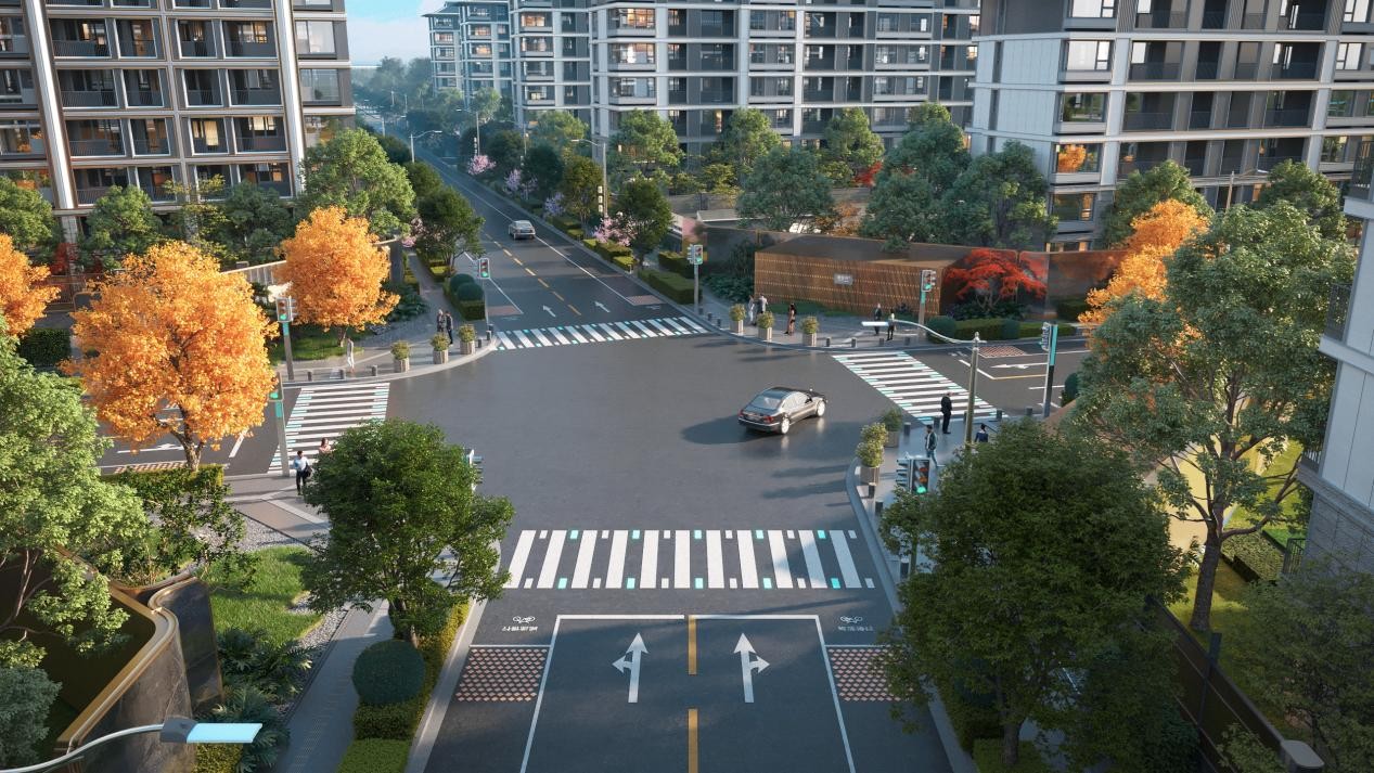 北京国贤府从文化营宅升维为文化营城,在一期、贰期之间规划唐风十字街区,主入口打造枫林步道与城市公园,南北以国槐+绚丽海棠为主的街区打造,东西向规划的银杏⼤道,体现大唐长安朱雀大街的雍容与繁盛,通过景墙、地雕、宫灯和唐风小品等细节,将归家之路变成一场穿越千年的文化漫步。