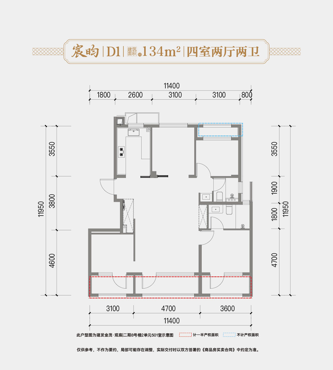 是一期卖爆了的132户型升级款,标准大四居、约4.7米的阔绰宽厅,餐厅能放下8人位大圆桌,采光也非常好。
