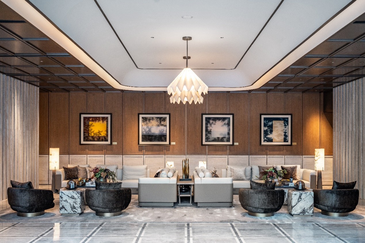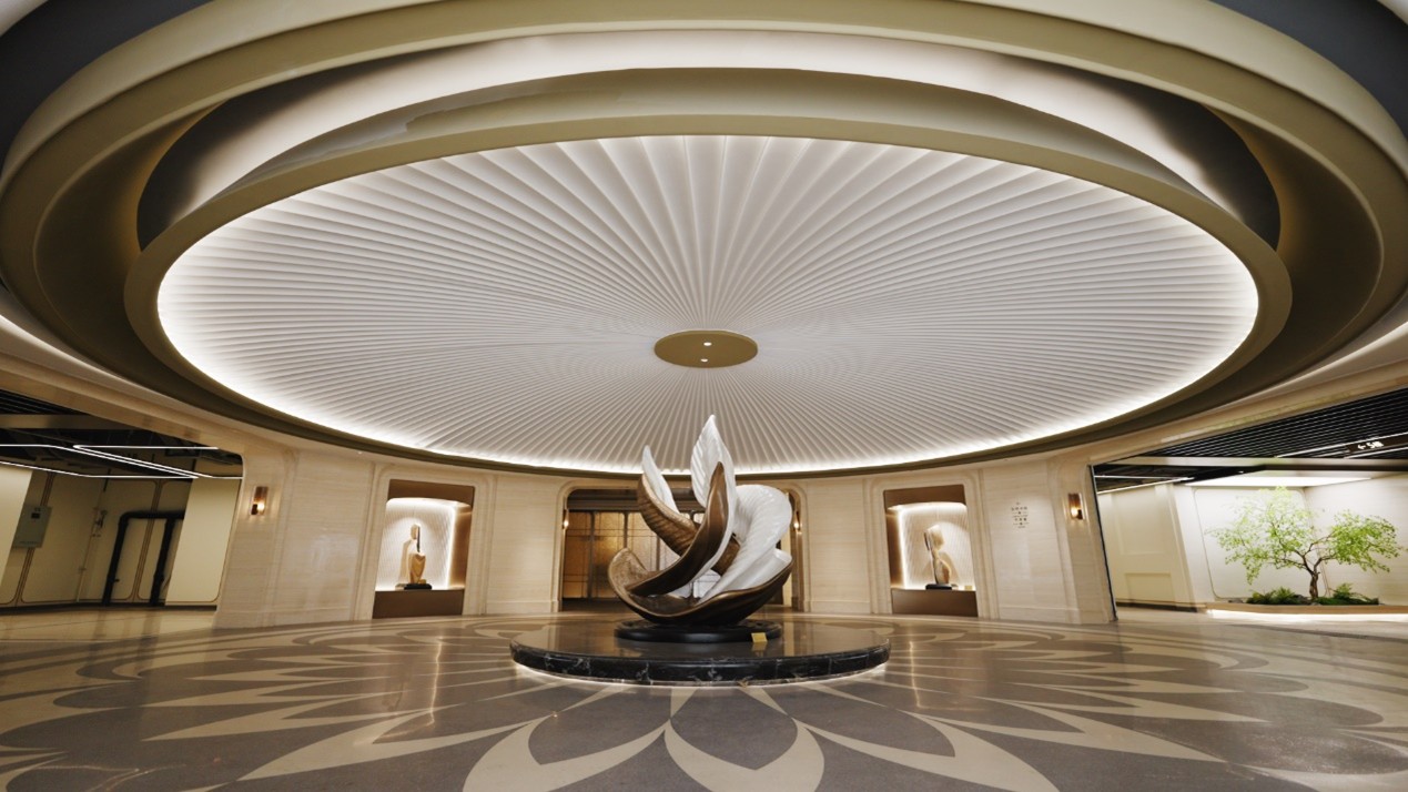 归家之旅充满仪式感,车马大堂参照巴斯圆形广场布局,打造环形落客空间,中心艺术装置与穹顶呼应,营造强烈向心感;迎宾光厅借鉴上海和平饭店挑檐设计,通过灯光与材质的精心搭配,呈现典雅温暖的归家印象。