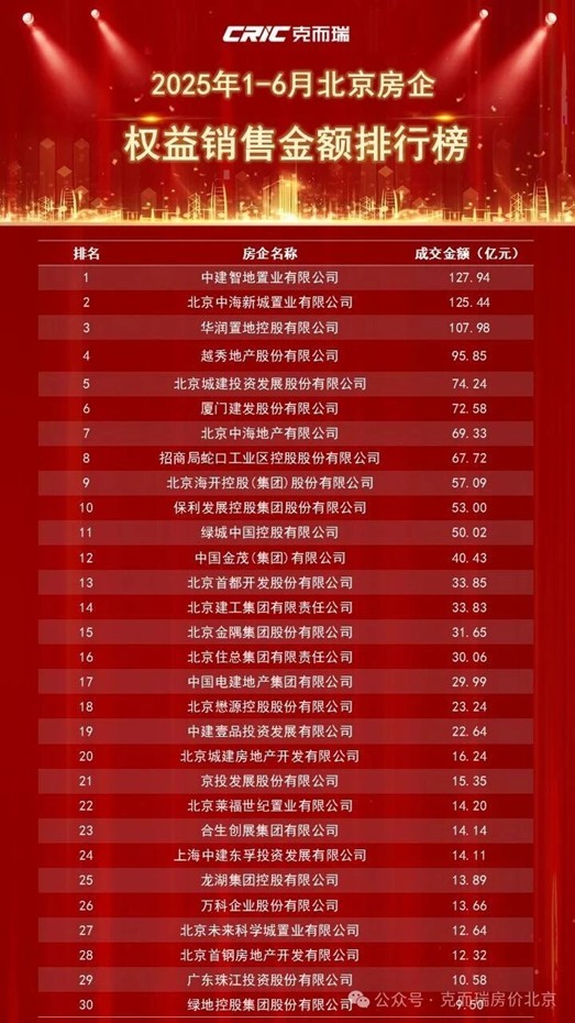 中建智地在北京的深耕,不仅体现在土地储备的扩张,更反映在出色的销售业绩上。在过去的5年里,中建智地从北京楼市的新面孔,成长为北京楼市的领头羊:2025年上半年,中建智地以127.94亿元权益销售金额位居北京房企TOP1,将文化营宅推向了新的高度。