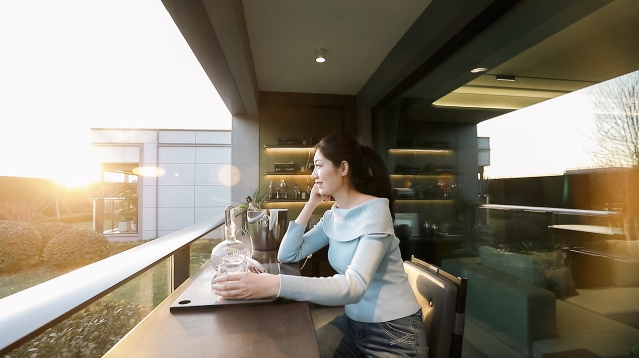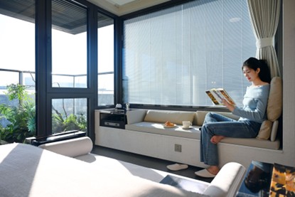 电动窗帘缓缓打开,窗景与清风化为眼前的仪式感,