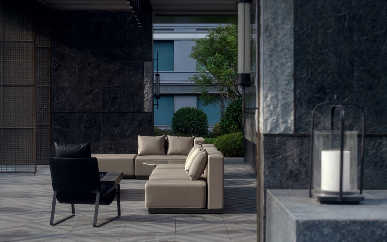光穿过宽阔的楼间距,温柔地铺满整个空间,