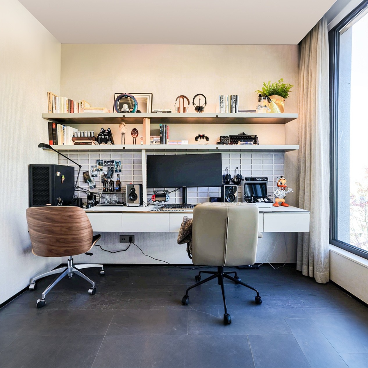朝霞浸染阔窗,空间被柔暖的光线充盈。