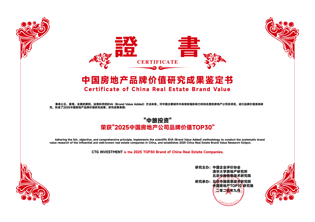 这种“长期主义”首先体现为战略定力与品牌升维。面对行业深度调整与发展模式转型,中旅投资依托稳健发展的战略和运营能力,在行业整体承压的背景下,实现了高质量的逆势增长。企业不仅明确了“一体两翼”的战略路径(以地产开发为主体,以运营型业务和服务型业务为两翼),精准契合国家推动房地产向开发、运营、服务并重的新发展模式转型的方向,更在市场竞争中显著提升行业地位。过去两年间,中旅投资实现了从百名之外到稳居TOP50的跨越式进位:自克而瑞2023年《1-12月·中国房地产企业权益金额榜》第127位起步,现已在克而瑞、中指、亿翰、观点指数四大权威机构发布的《2025年1-10月中国房地产企业权益销售榜单》中,分别跃升至第49位、第45位、第39位和第41位,单榜最大提升幅度达78位,2025年9月11日,在由中国企业评价协会、清华大学房地产研究所、北京中指信息技术研究院主办,北京中指信息技术研究院中国房地产TOP10研究组承办的“2025中国房地产品牌价值研究成果发布会暨第二十二届中国房地产品牌发展论坛”上,中旅投资再次荣膺“2025中国房地产公司品牌价值TOP30”,成为当下市场中少见的逆势上升样本。