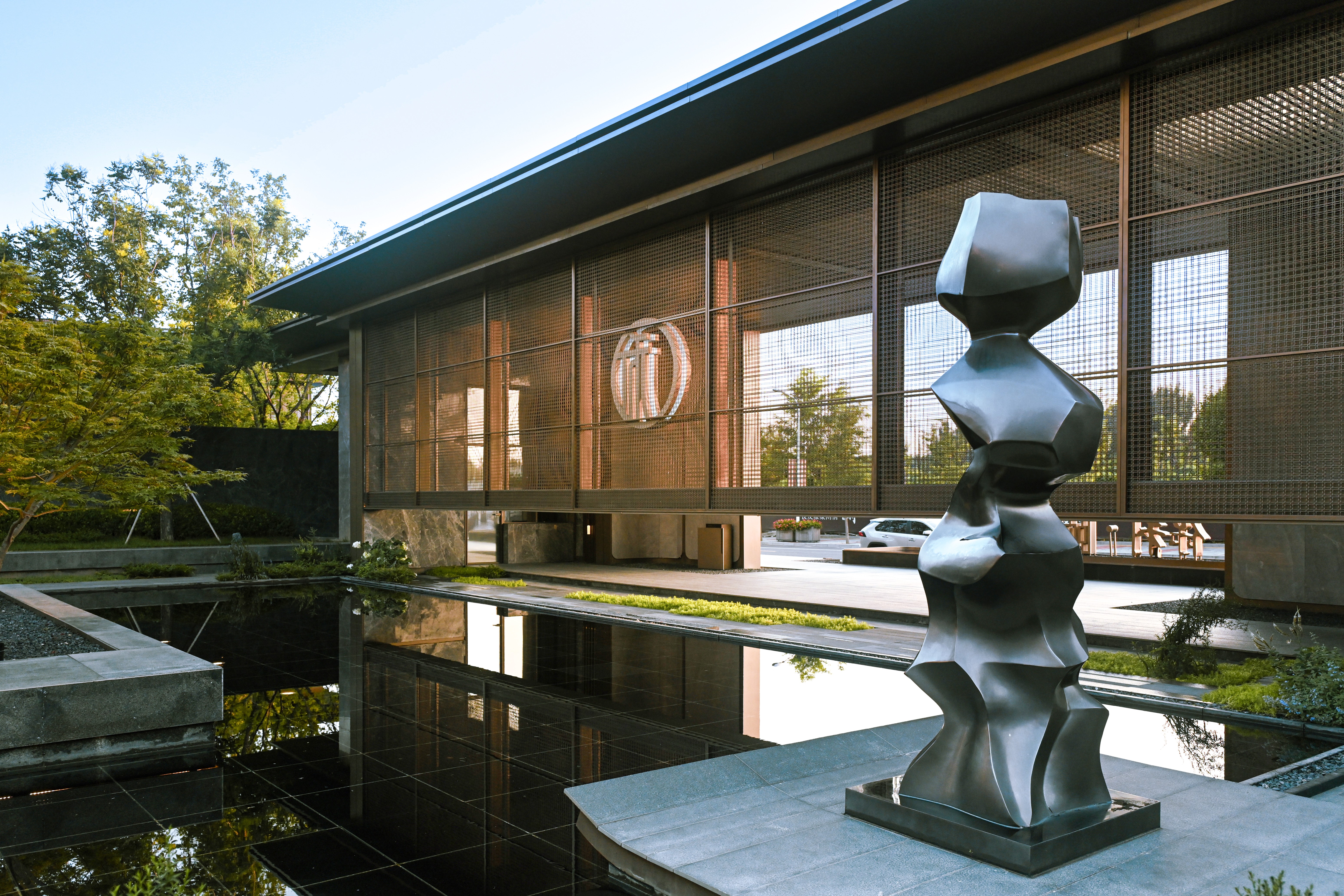 这种“在地化融入”的设计哲学,也让社区园林成为潮白河意蕴的微缩与转译。五进九幕游园礼序层层递进,跌水景墙潺潺意动,宛若凝固的河韵缓缓流淌,在地化诗意在方寸园林中缓缓舒展,成为居民可游、可赏、可感的日常风景。