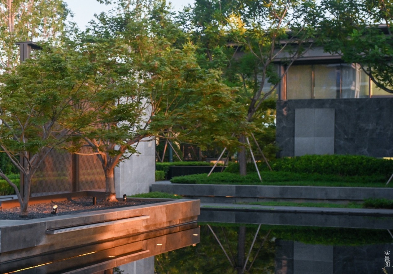 归家,是身与心的同步抵达。从事业场到生活场,转而追寻内在的静奢与治愈。约40米宽境门头与渐进式曲线景墙,以谦和之姿映衬潮白河的波光,成为保利在地人文的生动转译。信步园中,潮白河的灵韵被匠心化为社区流动的诗篇。六重叠水景墙奏响自然的乐章,潺潺水声与变幻的光影,将自然韵律引入日常,让奔波归家的身影,能在水韵天光中迅速获得松弛沉淀。