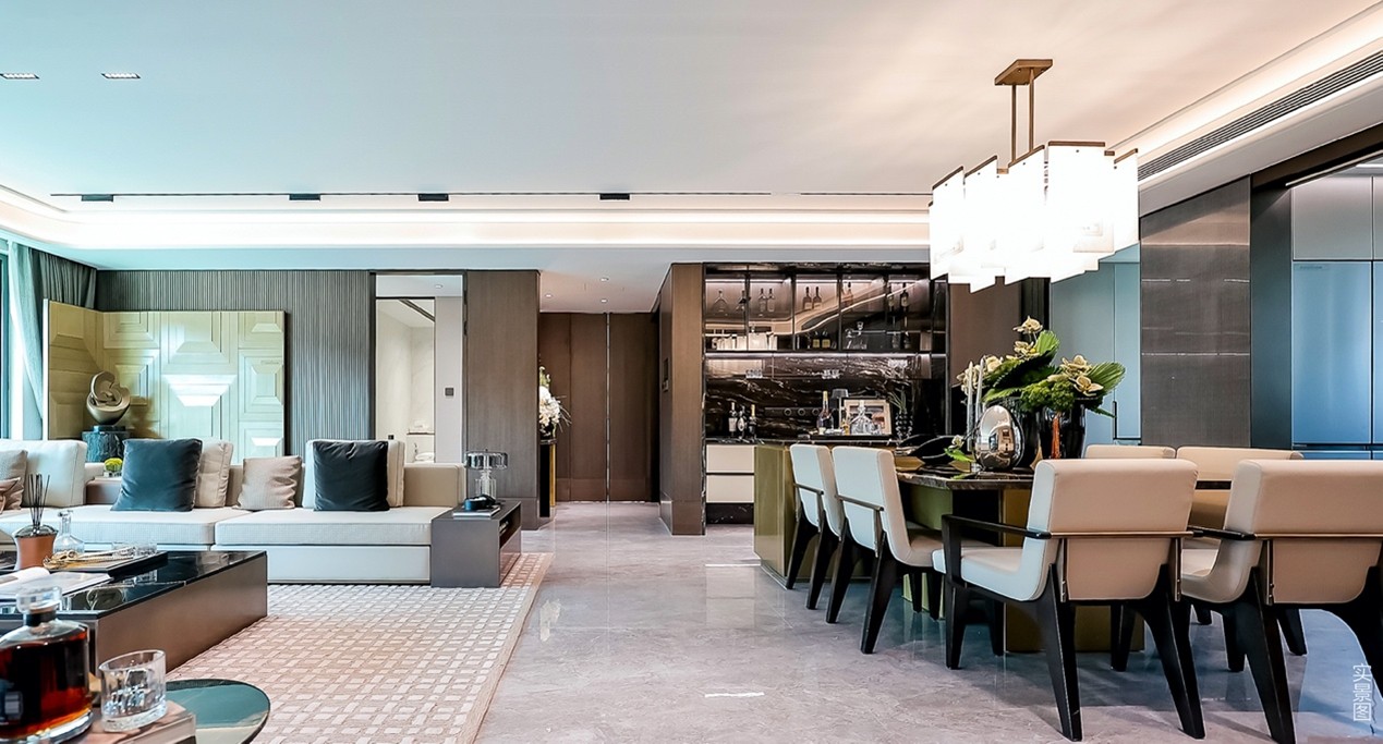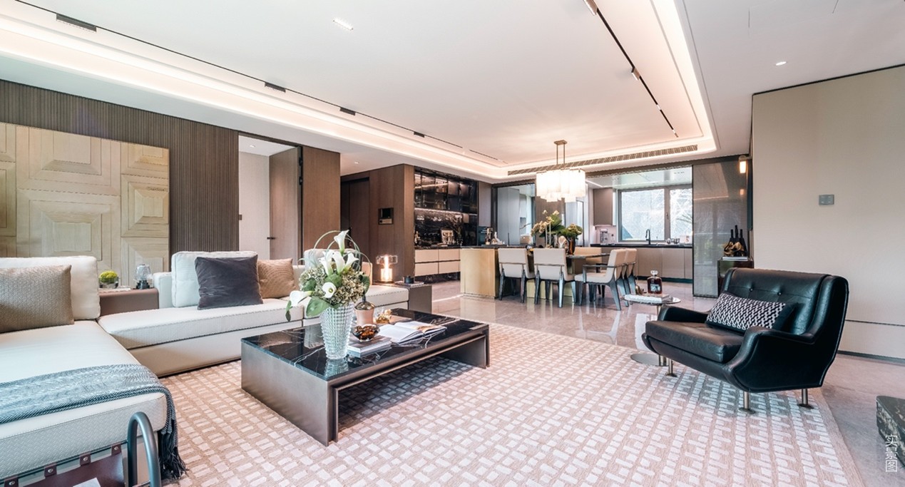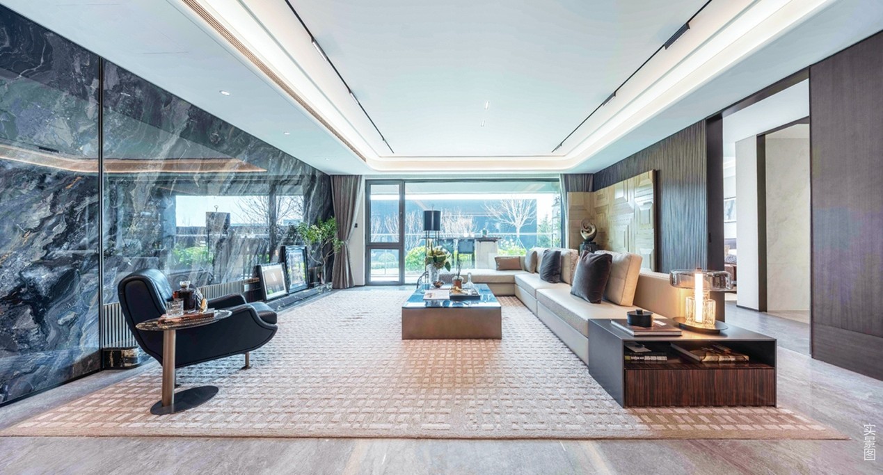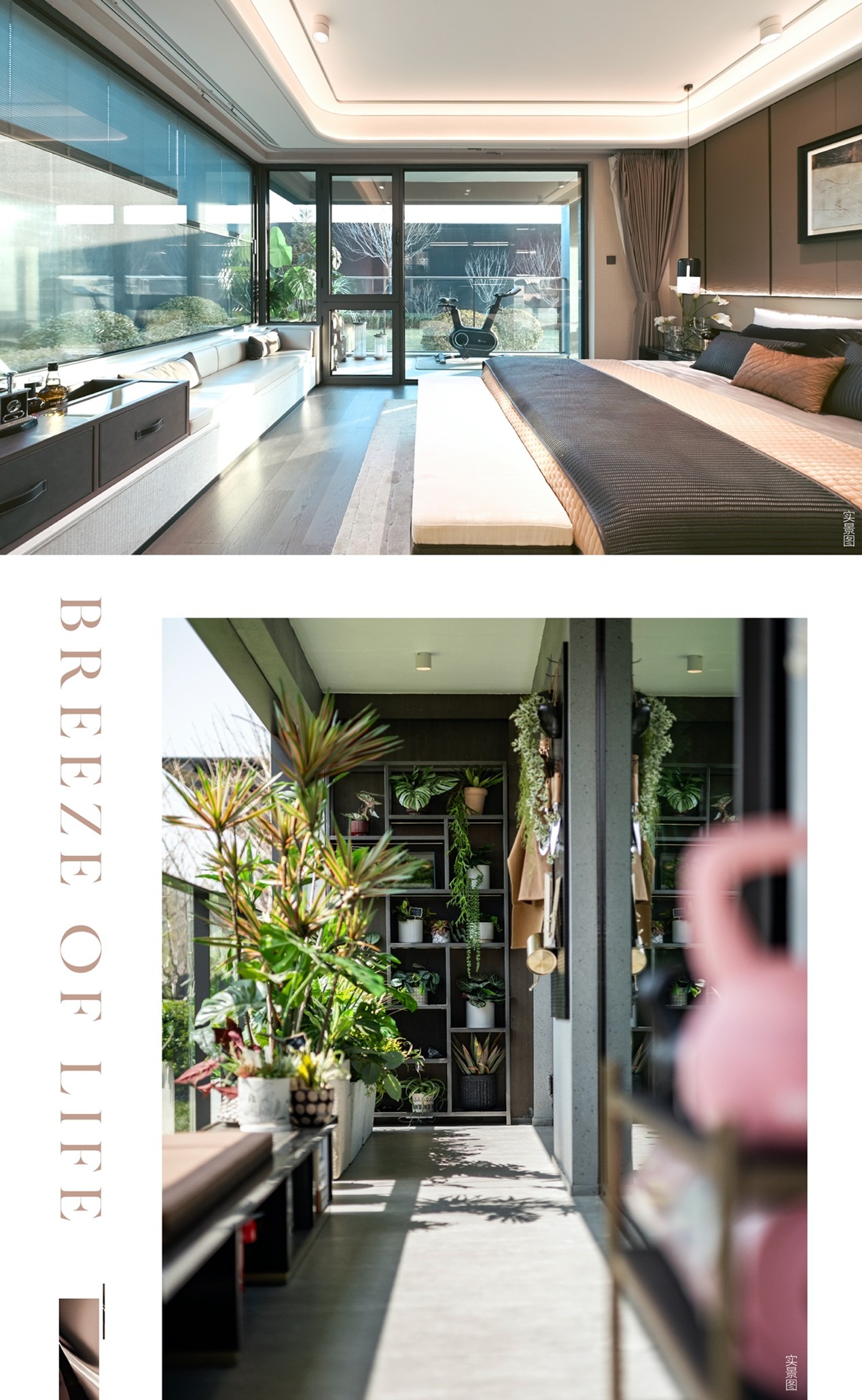 为了更好地收藏潮白河的风光景,项目以至高0.5的窗墙比搭配短进深设计,在保障充足采光的同时,让空间的延伸感与河景视野无缝衔接。南向约12.9米观景窗台+主卧270°超广角瞰景边窗的定制化设计,将潮白河的粼粼波光与园中的浓荫最大限度引入室内,为居者兑现难以复制的“情绪价值”与“河居价值”。
