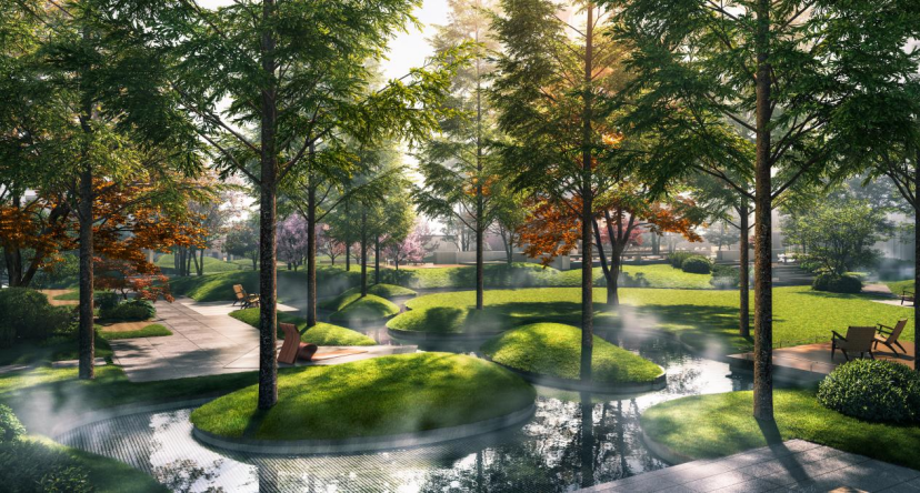 社区内部打造南北双园双水系景观,实现 “外有城市绿肺、内有私家湖岛” 的双重生态体验,重新定义国际公园湾区的生活形态。